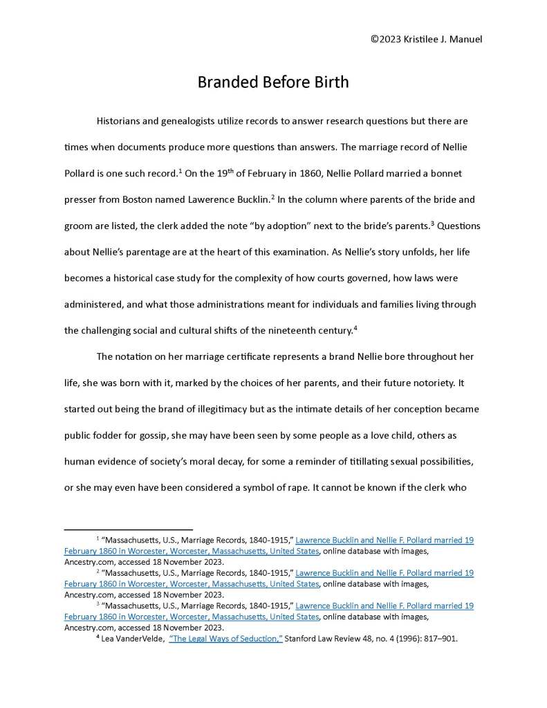 (Please see below for the “Branded Before Birth” paper which is an example of combining historical and genealogical research.)